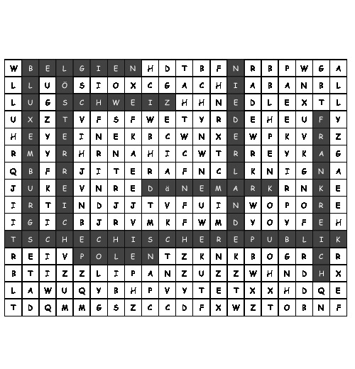 Suchsel mittel / in der reihenfolge der buchstaben sind aber in den zeilen und spalten wörter versteckt.